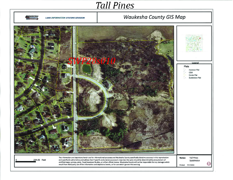 - Tall Pines Subdivision: 1 wet pond